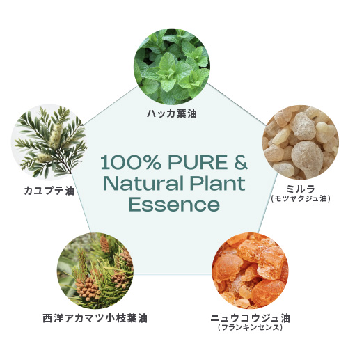 全成分 ハッカ葉油、西洋アカマツ小枝葉油、カユプテ油、ニュウコウジュ油(フランキンセンス)、ミルラ(モツヤクジュ油)