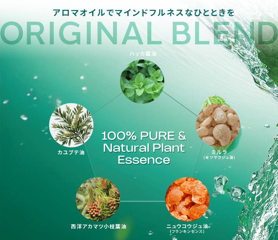 全成分:ハッカ葉油、西洋アカマツ小枝葉油、カユプテ油、ニュウコウジュ油(フランキンセンス)、ミルラ(モツヤクジュ油)