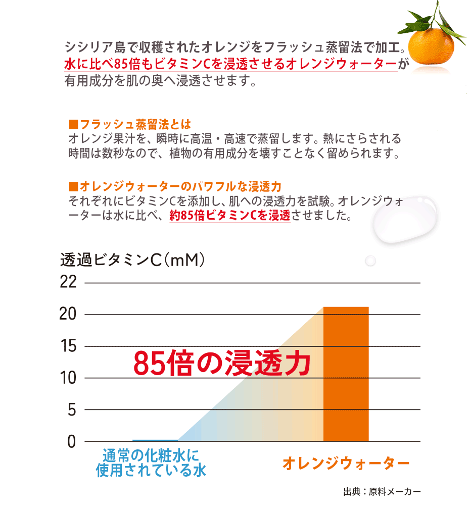 オレンジウォーターと国産野菜エキス配合の美容液トナー